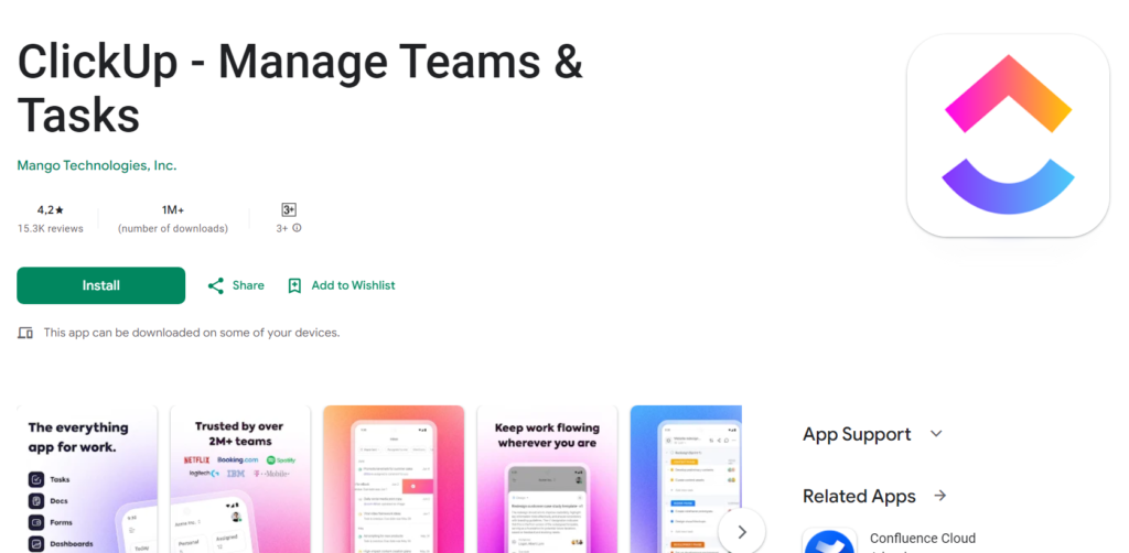 A popular task management application for projects, this tool offers a wide range of options for displaying tasks, including Kanban boards, Gantt charts, and customizable tables. Its intuitive, colorful interface makes it enjoyable to use. The software is ideal for teams that need an efficient tool for planning and managing team time, such as during project execution. While it is scalable and can be effective for many teams seeking a simple project management tool, it may not fully meet the needs of teams requiring a comprehensive, all-in-one project management system.